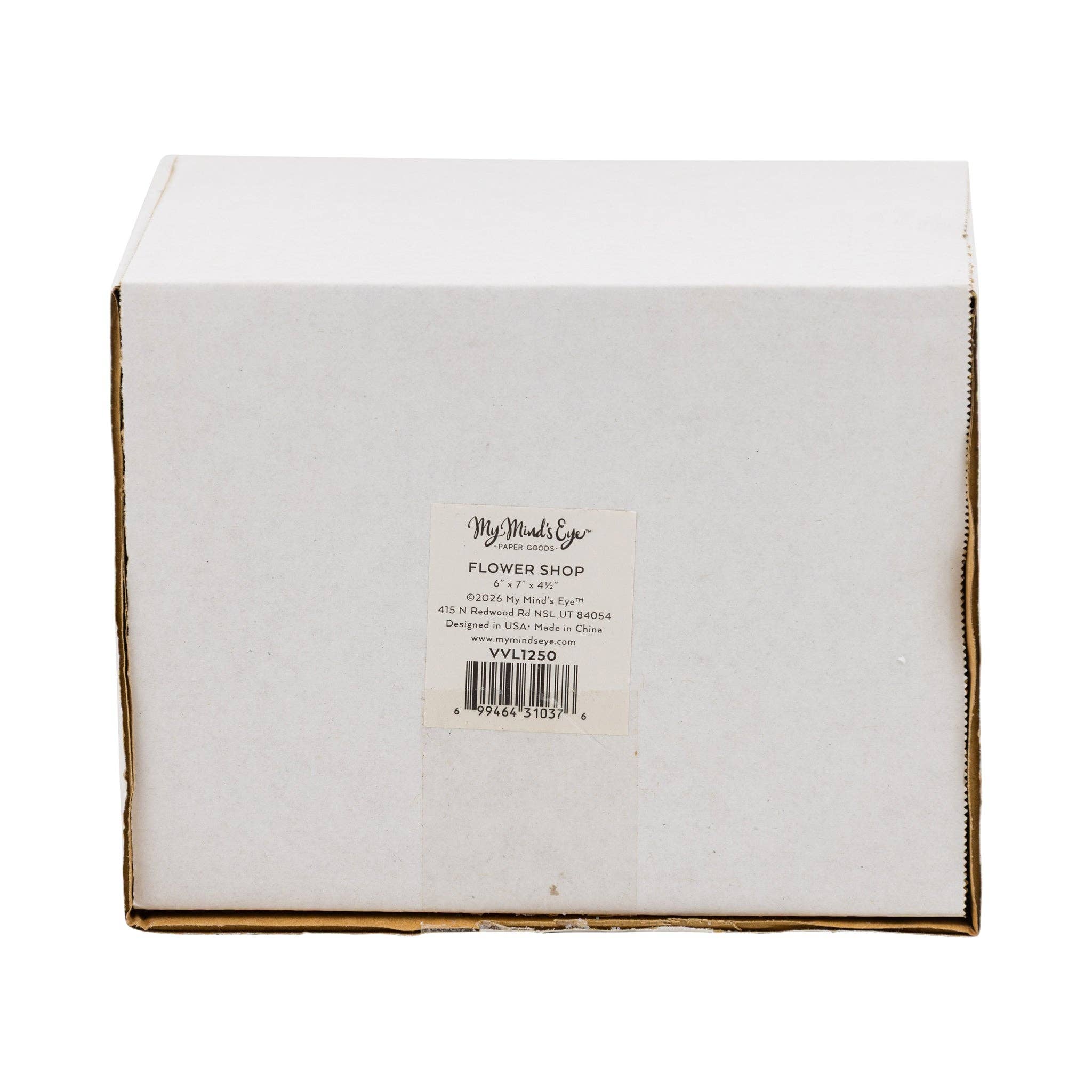 Illuminate your Valentine village with this enchanting battery-operated Flower Shop! This charming paper house glows with warm, festive light, transforming any display into a magical romantic scene. Perfect for creating an interactive village experience, the built-in lighting adds ambiance and draws everyone's attention to this adorable floral boutique. • Red, pink, and cream valentine flower shop • Flower shop is 6" wide x 4.5" deep x 7" tall • Constructed of heavyweight paperboard with glitter and gold foil accents • Includes battery powered light inside with 8 hour timer • Requires 2 AAA batteries • Please keep out of reach of small children
